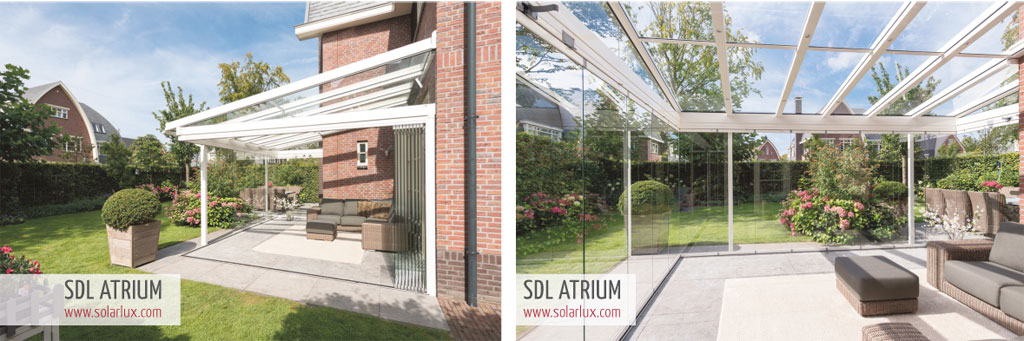 Dann schiebt der Wind eine dunkle Wolkenfront mit Regenschauer heran. Und schnell wird der idyllische Morgen sehr ungemütlich. Der Wunsch nach einer Terrassenüberdachung macht sich breit – am besten gleich mit seitlicher Verglasung, um nicht nur vor Regen, sondern auch vor Wind Schutz zu haben. Doch welche Terrassenüberdachung ist die „richtige“? Auf dem Markt gibt es ein breites Angebot. Nicht nur, was die Konstruktion an sich anbelangt (meist aus Holz oder Aluminium), sondern insbesondere beim Material auf dem Dach. Weit verbreitet sind Terrassenüberdachungen aus Glas oder aus Kunststoff. Wenn es sich um Kunststoff handelt, können das entweder komplette Scheiben aus Acryl oder Polycarbonat sein, oder aber eine Bedachung aus Lamellen. Solarlux, ein Unternehmen aus dem niedersächsischen Melle, schwört beim Bau einer Terrassenüberdachung dagegen auf Glas. Zunächst einmal ist Glas leiser. Denn der oben beschriebene Regenschauer sorgt für ein ordentliches Trommelfeuer auf einem Kunststoffdach. Beim Glasdach fällt die Geräuschkulisse deutlich gedämpfter aus. Zudem ist Glas stabiler und hält auch heftigen Niederschlägen besser stand. Das Solarlux-Terrassendach „SDL Atrium plus“ verwandelt die Terrasse in einen Ort der Ruhe und Entspannung (Bilder unten, www.solarlux.com). Zubehör wie der Design-Heizstrahler, verschiedene Markisentypen und die energieeffizienten, dimmbaren LED-Strahler lassen das „SDL Atrium plus“ zu einem Allrounder für alle Ansprüche werden.