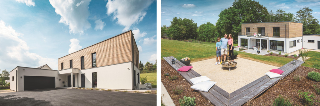 Dass die Familie ein Herz für Tiere hat, stellten sie unter Beweis, als sie vier Kurzhaar-Schafe vor ihrem letzten Gang retteten. Rund 2.000 Quadratmeter stehen den Schafen zur Verfügung. Die Holzverschalung der Weidehütte ist sogar an die des Wohnhauses angepasst. Bei den Zarmuteks wird Familie groß geschrieben. Deshalb wohnt die Verwandtschaft gleich nebenan in derselben Straße. Alle drei Häuser sind ebenfalls von WeberHaus gebaut. „Wir sind mehr als zufrieden mit der Arbeit von WeberHaus. Von Anfang bis zum Ende war alles top organisiert und die Qualität stimmt einfach“, schwärmt der Bauherr. Die Professionalität konnten Tanja und Kim Zarmutek beim Hausaufbau live miterleben. „Es war sehr beeindruckend für uns zu sehen, wie alles völlig unkompliziert und ohne Hektik ablief. Jeder wusste genau, was er zu tun hat“, erinnern sich die beiden. So ist es auch nicht verwunderlich, dass sie im Nachhinein nichts anders machen würden.