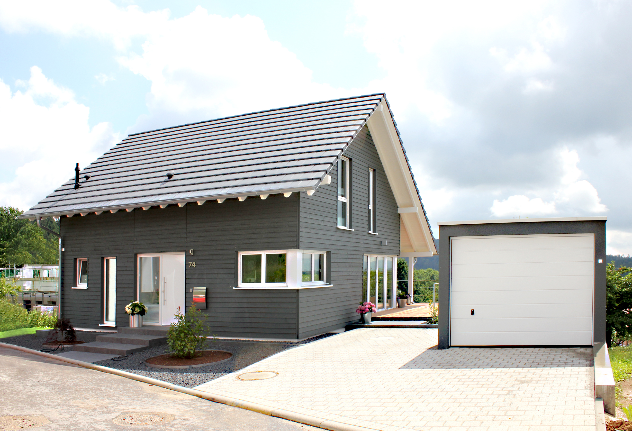Das war die Vision des Ehepaares, das sich gemeinsam mit Lehner Haus den Traum vom eigenen Haus erfüllt hat. Dabei wurden individuelle Vorstellungen und Planungen der Bauherren ohne Einschränkungen bis ins letzte Detail in bester Qualität realisiert. Die Suche nach einem Baupartner war nicht einfach. „Wir wollten auch ein wenig Bauhaus“, sagt die Bauherrin. „Das Haus sollte sachlich, geradlinig, offen und geometrisch sein – ohne Schnörkel. Es war gar nicht so einfach, da -für den passenden Baupartner zu finden.“ Mehrere Berater mussten die vielen besonderen Wünsche des Ehepaares einschränken. Lehner Haus aber versprach, die bereits entwickelten Pläne Eins-zu-Eins umzusetzen. „Es gab da keinerlei Beschränkungen durch Standardvorgaben“, so der Bauherr. Heute bietet das Haus am Hang mit einer Wohnfläche von 143 m2 und viel sichtbarem Holz eine sehr wohnliche Atmosphäre. Das Raumklima ist durch eine kontrollierte Be- und Entlüftung besonders angenehm und sehr gesund. Die Fußbodenheizung wird von einer modernen Gasbrennwertanlage sehr sparsam beheizt. Im Winter sorgt zusätzlich ein Kamin für eine wohlige Wärme und Gemütlichkeit. Die dreifach verglasten Fenster haben außen einen Aluminium- und innen, passend zum Ambiente, helle Holzrahmen bekommen. Eine Galerie über dem Wohn- und Essbereich sorgt zusammen mit fuß-bodentiefen Fenstern für eine besondere Raumhöhe und ausgesprochen viel Licht.