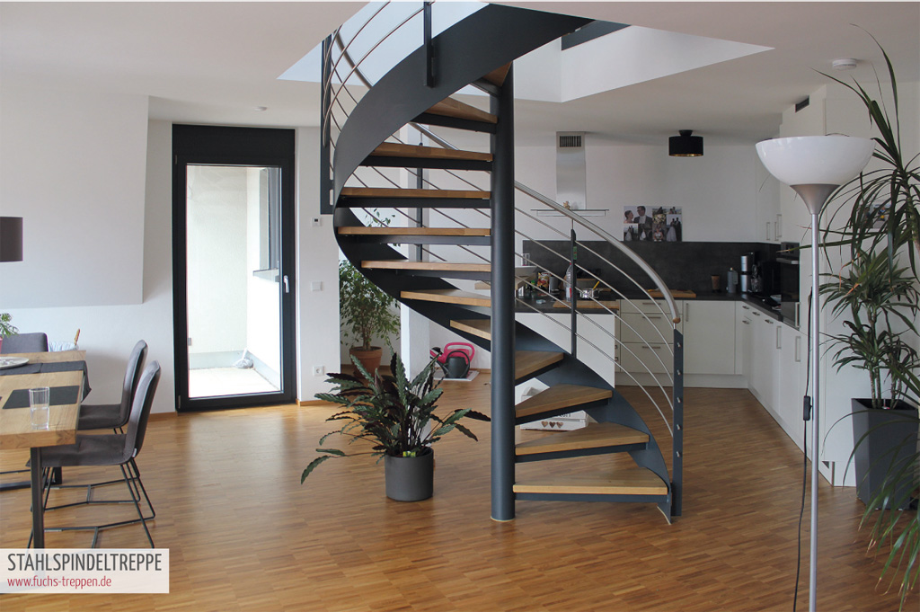 Spindeltreppen dienen nicht nur der Verbindung zweier Wohnebenen. Vielmehr sind sie ein gestalterisches Element, das jedem Raum Eleganz und Dynamik verleiht. Durch ihre geschwungene Form versprüht die Spindeltreppe gleichermaßen spielerische Leichtigkeit und anmutige Ästhetik. In diversen Varianten passt sich der exklusive Treppentyp dem individuellen Einrichtungsstil des Hauses an. Ganzholztreppen strahlen mit warmen Holztönen eine angenehme Behaglichkeit aus. So eignen sich die Holzspindeltreppen hervorragend für den gemütlichen Landhausstil. Ein Materialmix aus Holzstufen und einem Stahlgeländer erzeugt derweil einen spannenden Kontrast im modern geprägten Wohnstil. Doch ganz gleich, welches Material oder welche Geländerform – die Spindeltreppe ist ein architektonisches Highlight in jedem Einrichtungskonzept. Trotz ihrer schwebenden Optik stehen Spindeltreppen auch in puncto Stabilität anderen Treppentypen in nichts nach. Erfahrene Experten wie Fuchs-Treppen setzen auf hochwertige Materialien, eine passgenaue Fertigung und eine sichere Montage. Mit heraus- ragender Qualität und individuellem Design erfüllen die Treppen alle Anforderungen eines anspruchsvollen und modernen Zuhauses (www.fuchs-treppen.de). Neben Spindeltreppen sind aber auch anderer Möglichkeiten denkbar. Für fachgerechte Beratung, welche gesetzlichen Vorgaben es gibt und welche Lösung optimal die räumlichen Gegebenheiten mit ihren Wünschen vereint, stehen die Experten von Fuchs-Treppen an vielen Standorten in Deutschland persönlich zur Verfügung.